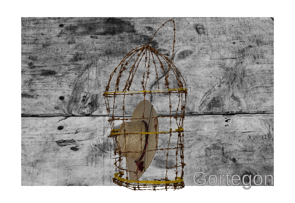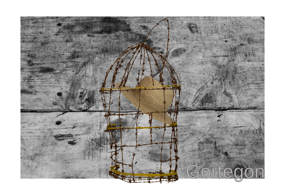 En este diálogo matérico se introducen elementos que manifiestan la evolución del tiempo y el impacto de las experiencias humanas. La jaula hecha de alambre de púas oxidado refleja las fronteras que, tanto de forma visible como simbólica, dividen a las comunidades. Al mismo tiempo, se convierte en una metáfora de los límites—geográficos, sociales y emocionales—que enfrentan quienes migran.